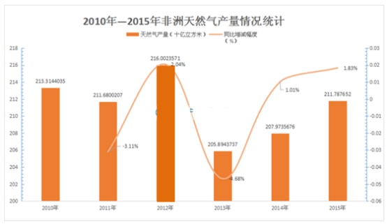 隨著二十一世紀經(jīng)濟水平逐漸提高,對于各國天然氣產(chǎn)業(yè)開采以及儲運技術逐步提升,同時對于世界各國天然氣產(chǎn)業(yè)市場發(fā)展增長階段。 對于非洲天然氣市場2010年-2015年天然氣市場分析 2010年非洲天然...