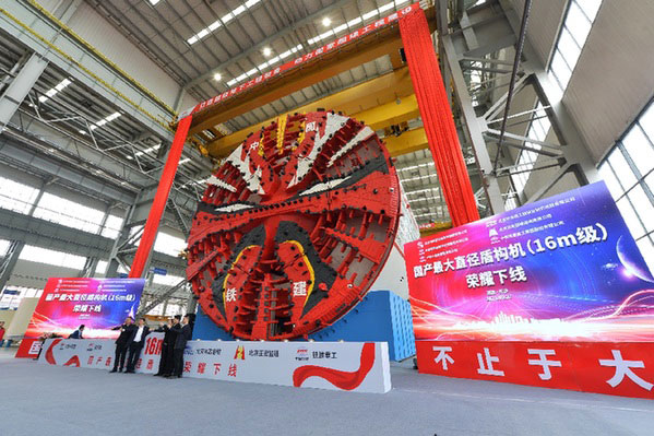 當(dāng)日,一臺最大開挖直徑達(dá)16.07米的超大直徑盾構(gòu)機(jī)在中國鐵建重工集團(tuán)長沙第一產(chǎn)業(yè)園下線。這臺盾構(gòu)機(jī)整機(jī)長150米,總重量4300噸,這是我國迄今研制的最大直徑盾構(gòu)機(jī)。