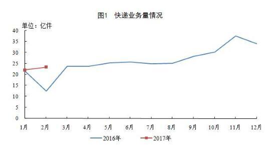 2017年2月中國快遞業(yè)務(wù)量完成23.4億件