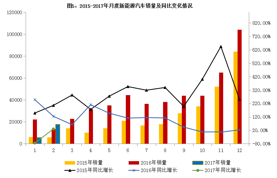 1-2月,新能源汽車?yán)塾嬌a(chǎn)和銷售均為2.5萬輛,比上年同期分別下降33.5和30.5%。其中純電動汽車產(chǎn)銷分別完成2.1萬輛和1.9萬輛,比上年同期分別下降23.6%和23.4%;插電式混合動力汽車產(chǎn)銷分別完成0.40萬輛和0.58萬輛,比上年同期分別下降60.5%和46.7%。