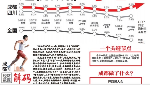 “錯(cuò)綜復(fù)雜”的2019年,經(jīng)濟(jì)運(yùn)行迎來“半年報(bào)”。這也是各大城市的“半年考”。其中,成都以8.2%的同比增長率,無論在“萬億俱樂部”還是已經(jīng)公布數(shù)據(jù)的副省級城市,均為領(lǐng)跑地位。
